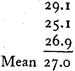 From these one finds by the method of least squares as most probable mean: 26.4 [meters/sec.].
